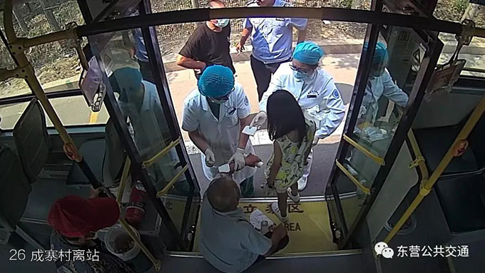 救人后的孫建強仔細檢查了三人的傷勢,“由于電動車側翻擠壓,大爺胳膊受傷,被扎了玻璃碴子,大娘腰部受傷,小女孩的眼睛受了傷,腿也受了傷,我就趕緊撥打了120?!蓖瑫r,孫建強向所在車隊匯報了遇到的突發情況。車隊領導當即表示,安頓好車內乘客,先救傷者。在等待救護車到來的時間,孫建強從公交車上拿了些衛生紙和礦泉水,簡單幫三人清理了傷口。23日的東營正是高溫天,氣象臺發布了高溫紅色預警,當天的氣溫最高達到了41攝氏度,非常炎熱,“我們的公交車上都開著空調,我就把他們扶到公交車上休息。”救護車很快就來了,醫護人員在給傷者進行包扎的時候,孫建強一邊安撫老人,一邊向老人詢問要不要幫忙聯系家人,老人告訴了他村里書記的電話。經聯系,村大隊書記表示立即安排相關人員跟進。