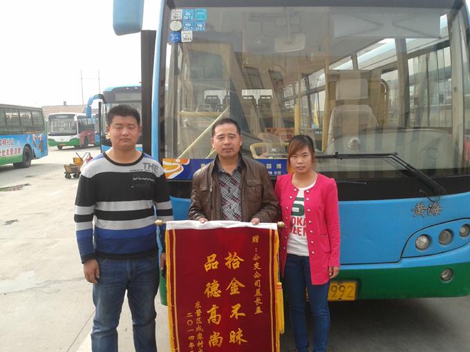 4月2日,家住郝家鎮郝家村的成艷艷拿著一面寫有“拾金不昧、品德高尚”的錦旗來到市公交公司汽車四隊,感謝車隊駕駛員蓋長孟師傅拾金不昧的高尚品德。東營日報黃河口晚刊的記者也來到車隊,采訪了蓋長孟師傅。