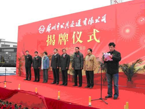 2010年12月15日,蘇州市公共交通有限公司舉行了隆重的揭牌儀式。市委副書(shū)記、市長(zhǎng)閻立、副市長(zhǎng)朱建勝、市政協(xié)副主席葛維玲等領(lǐng)導(dǎo)出席活動(dòng),現(xiàn)場(chǎng)的300多名公交員工共同見(jiàn)證這一歷史性時(shí)刻的到來(lái)。