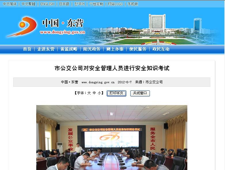 2012年6月7日東營市政府網站報道